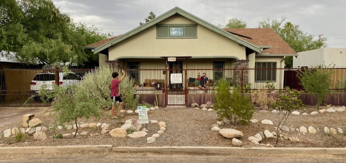 – The NW corner of 9th Ave and University Blvd adjoining the 813 N. 9th Avenue property for the first pre-legal, and later legalized curb cuts and street-side rain gardens in neighborhood (which helped legalize the practice city-wide). Bilingual educational signage at this site tells the story.
